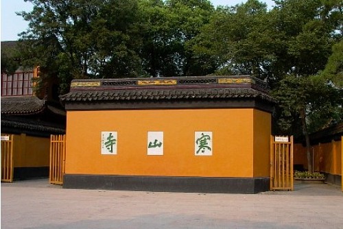 夜半歌声的寒山寺 寒山寺在苏州城西阊门外5公里外的枫桥镇,建于六朝时期的梁代天监年间,距今已有1400多年。原名“妙利普明塔院”。唐代贞观年间,传说当时的名僧寒山和拾得曾由天台山来此住持,改名寒山寺。
