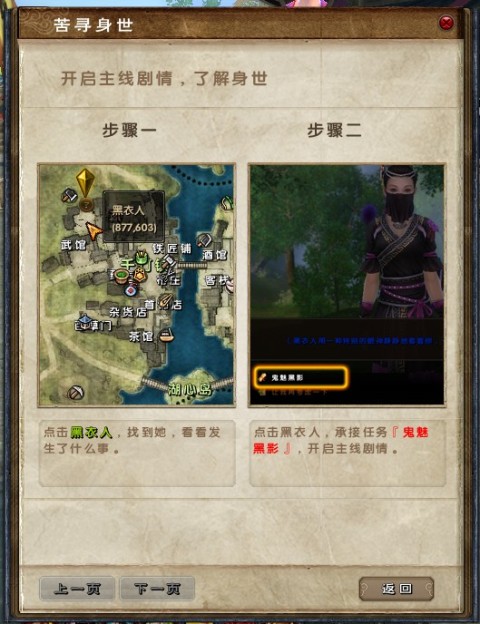 与黑衣人对话,接好主线任务了。(个人建议还是先学好武艺再去跑主线任务,否则会被虐得跟狗一样,别怪小绾没提醒各位看官呢!)