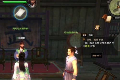 大师兄赢翔就在屋外的光圈内,从光圈传送进去,这种程度的学习,对于要闯荡江湖的你来说那绝对是件小CASE! 不过大家别忘了,对话完之后,都要按B快捷键打开包裹学习技能(右键点下技能书打开学习界面点学习即可)再去挑战各个师兄哦,不然被打的屁滚尿流,可不是好玩的。