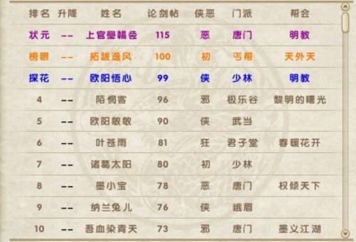 九阴武林大会线上赛 各服积分榜32强均出炉
