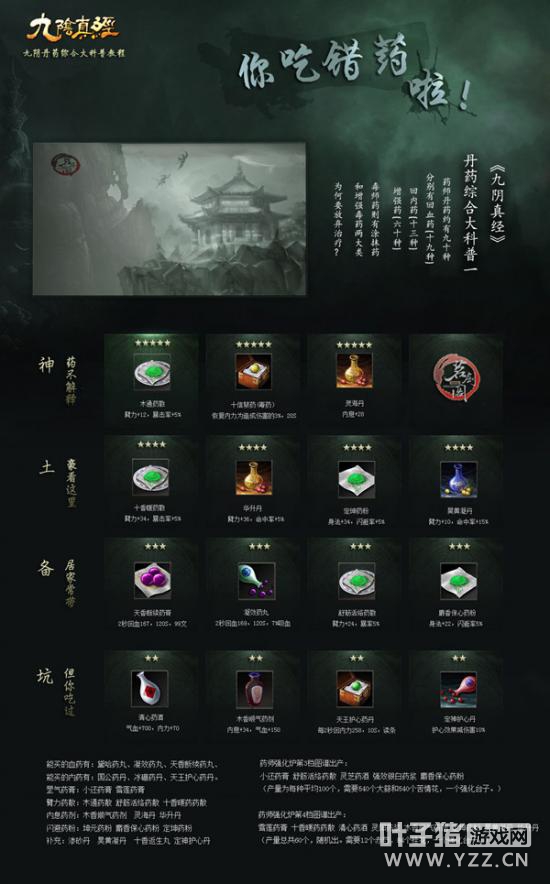九阴真经药师丹药科普 大侠不要放弃治疗