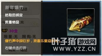打开新年爆竹可获得一个喜庆礼包,一个花团锦簇烟花(绑定)。