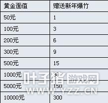 即日起,凡在官网使用网银充值和淘宝旗舰店充值黄金的玩家,即可根据每笔充值的黄金面值,获得对应数量的“新年爆竹”。