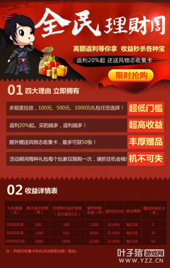 4.所有返还收益均以等价官银的形式到达玩家账号。