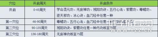 第二穴位90-135周天冰心诀,混元功任意一种内功练至75层