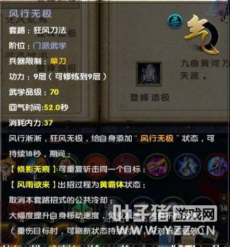 可见,狂风刀法的精髓就一个字——快,敌出一招,我出两招三招,这也是狂风刀法的魂之所在。可如何在九阴中体现?风行无极的状态下取消公共CD加上风雨的两秒可移动弱霸体,这样的设计令人拍案叫绝,真正实现了敌出一招,我出两招三招。