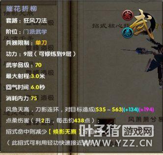 摧花折柳——唯一的冲锋招,值得一提的是,即使打在格挡上,也会减少倏影无痕的CD